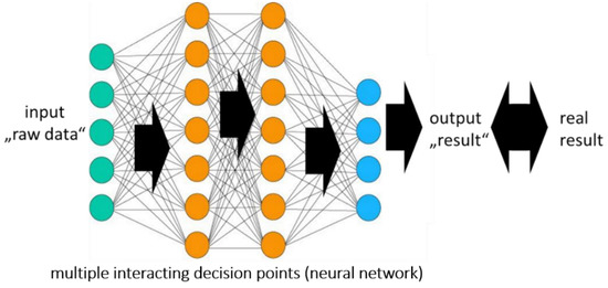 If several artificial neural decision levels are connected, then a deep neural network is created. Repeated decision making in such a neural network with constant comparison of an actual result with the one predicted in the network is called training. This mimics a learning process—hence the machine learning term. In this process, each decision-making procedure is followed by a correction mechanism that enables fine-tuning of the neural network and thus an optimized prediction. The process is called backpropagation, and is based on algorithms that have been developed since the 1980s [3]. The overall process within a deep neural network is called deep learning.
