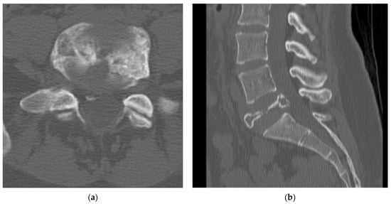 - Shimada, Y.; Hongo, M.; Miyakoshi, N.; Kasukawa, Y.; Ando, S.; Itoi, E.; Abe, E. Giant cell tumor of fifth lumbar vertebrae: Two case reports and review of the literature. Spine J. 2007, 7, 499–505. [Google Scholar] [CrossRef]