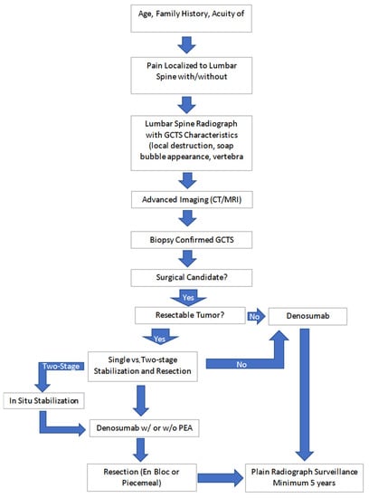 Leggett AR, Berg AR, Hullinger H, Benevenia JB. Diagnosis and Treatment of Lumbar Giant Cell Tumor of the Spine: Update on Current Management Strategies. Diagnostics. 2022; 12(4):857. https://doi.org/10.3390/diagnostics12040857