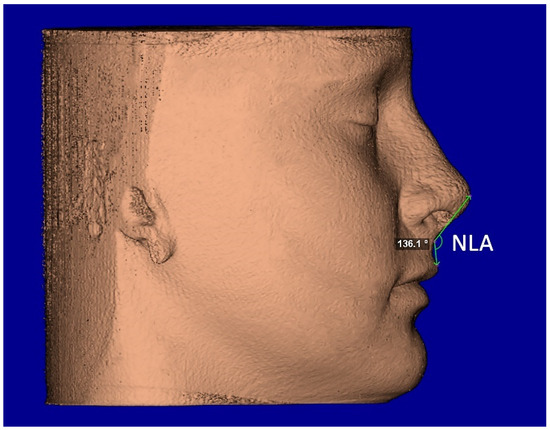 Facial soft-tissue linear measurement of the naso-labial angle (NLA).