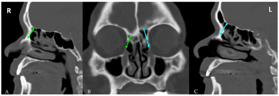 - Aydınlıoğlu, A.; Kavaklıı, A.; Erdem, S. Absence of frontal sinus in Turkish individuals. Yonsei Med. J. 2003, 44, 215–218. [Google Scholar] [CrossRef]