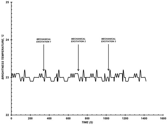 where k is the Boltzmann constant, T is the temperature, and Δf is the frequency range [32]. Equation (1) shows that the radiation power is proportional to Tbr. Therefore, from here on the radiation power (radiation energy for the frequency band Δf) will be measured in degrees. We will thus use Tbr units that the radiometer RTM-01 RES is divided into to show the results we acquired. Our measurements shall be ±0.1 °C precise. These measurements figures shall be shown as a brightness temperature’s function of time, Tbr(t).