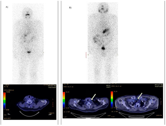 - Spanu, A.; Nuvoli, S.; Marongiu, A.; Gelo, I.; Mele, L.; De Vito, A.; Rondini, M.; Madeddu, G. The Diagnostic usefulness of 131I-SPECT/CT at both radioiodine ablation and during long-term follow-up in patients thyroidectomized for differentiated thyroid carcinoma: Analysis of tissue risk factors ascertained at surgery and correlated with metastasis appearance. Diagnostics 2021, 11, 1504. [Google Scholar] [CrossRef] [PubMed]