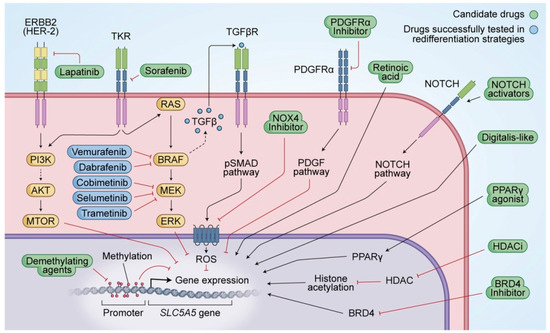 - Buffet, C.; Wassermann, J.; Hecht, F.; Leenhardt, L.; Dupuy, C.; Groussin, L.; Lussey-Lepoutre, C. Redifferentiation of radioiodine-refractory thyroid cancers. Endocr. Relat. Cancer 2020, 27, R113–R132. [Google Scholar] [CrossRef] [PubMed]
