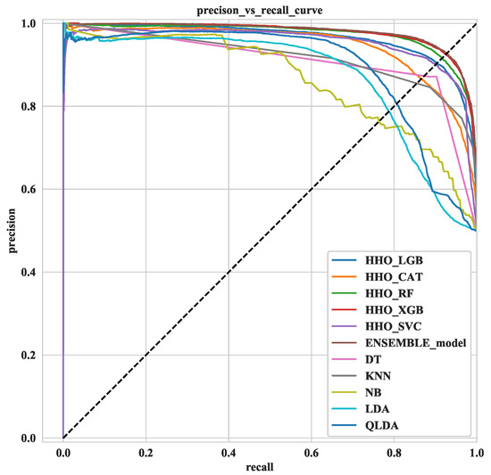 The PRC is generally utilized to get a clear classification overview that helps evaluate and compare the test result. The more the curve adjacent to the right corner of the graph is, the more the test result is perfect. Figure 3 shows that the PRC value is very close to the right corner of the curve, implying that the ensemble method provides superior performance, while NB stays at the lowermost point.