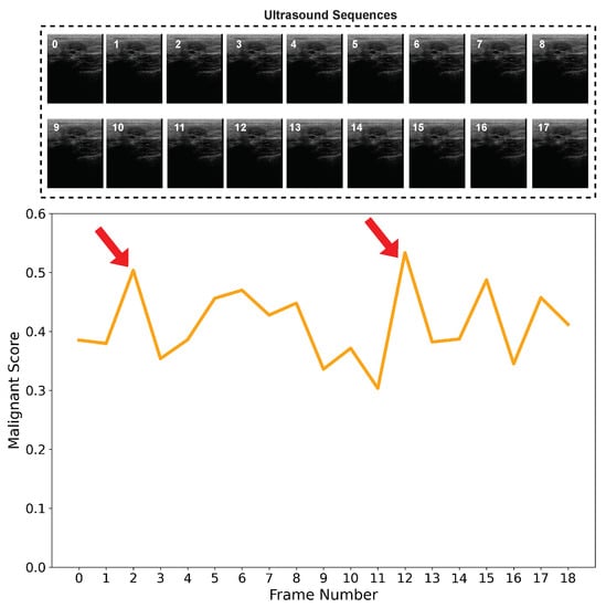 Furthermore, we also computed the malignancy score of each BUS sequence and overlaid it on the BUS images as shown in Figure 8.