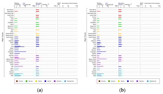 Expression of SCCA1 (a) and SCCA2 (b) in major tissues.