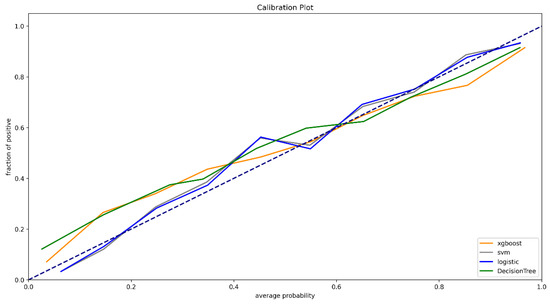 After employing the random downsampling technique to select surviving patients, the dataset was partitioned into the training set (70%) and the testing set (30%). After the completion of the feature engineering, the machine learning algorithms, including XGBoost, support vector machine (SVM), logistic regression (LR), and decision tree, were used to construct the models [28]. Receiver operating characteristic (ROC) curve analysis was considered as a metric to tune model parameters. Grid search and 5-fold cross-validation [29] were performed for hyperparameter optimization and the construction of prediction models. The AUCs, sensitivity, specificity, positive predictive rate, and negative predictive rate were calculated, and calibration curves [30] were plotted to evaluate the advantages or disadvantages of the models.
