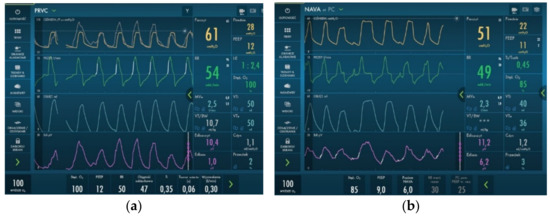 Invasive ventilation parameters used during hospitalization. We observed a reduction in PIP and MAP parameters after introducing NAVA ventilation. (a) PRVC ventilation; (b) NAVA ventilation.