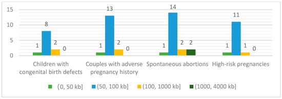 - Chau, M.H.K.; Cao, Y.; Kwok, Y.K.Y.; Chan, S.; Chan, Y.M.; Wang, H.; Yang, Z.; Wong, H.K.; Leung, T.Y.; Choy, K.W. Characteristics and mode of inheritance of pathogenic copy number variants in prenatal diagnosis. Am. J. Obstet. Gynecol. 2019, 221, 493.e1–493.e11. [Google Scholar] [CrossRef] [PubMed]