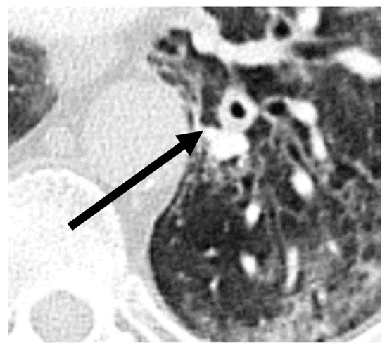 - Matsuoka, S.; Uchiyama, K.; Shima, H.; Ueno, N.; Oish, S.; Nojiri, Y. Bronchoarterial ratio and bronchial wall thickness on high-resolution CT in asymptomatic subjects: Correlation with age and smoking. AJR Am. J. Roentgenol. 2003, 180, 513–518. [Google Scholar] [CrossRef]