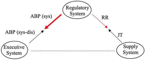 A schematic diagram illustrating the interconnectivity of the Executive System, the Supply System, and the Regulatory System.