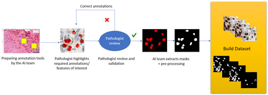 - Wahab, N.; Miligy, I.M.; Dodd, K.; Sahota, H.; Toss, M.; Lu, W.; Jahanifar, M.; Bilal, M.; Graham, S.; Park, Y.; et al. Semantic annotation for computational pathology: Multidisciplinary experience and best practice recommendations. arXiv 2021, arXiv:2106.13689. [Google Scholar] [CrossRef]
