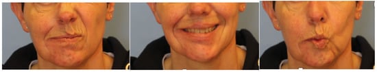 Peripheral facial nerve palsy is the most common peripheral cranial nerve disorder. Its etiology is very diverse. Although the most common, idiopathic facial nerve palsy (FP) (Bell’s palsy, with 60–75% of all cases) heals in nearly 80–90% of patients, other etiologies are known to be associated with defective healing, or even to result in a longstanding flaccid paralysis []. FP dramatically limits the quality of life on various levels. Dysphagia, speech disorders, xerophthalmia and consecutive corneal damage are some but not all of the possible physical consequences of the FP. Furthermore, limited nonverbal communication and the change of the appearance of the face significantly impact daily life. As a consequence, patients often suffer from psychological stress and social isolation []. For both aspects, the proper function of the lower face, especially the existence of the spontaneous smile, is crucial [].