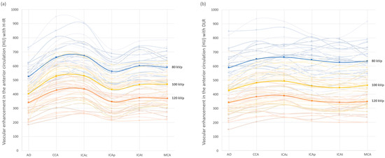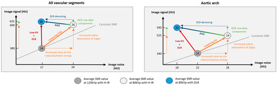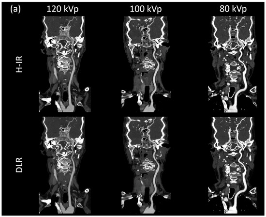 - Zhang, W.; Li, M.; Zhang, B.; Geng, H.-Y.; Liang, Y.-Q.; Xu, K.; Li, S.-B. CT Angiography of the Head-and-Neck Vessels Acquired with Low Tube Voltage, Low Iodine, and Iterative Image Reconstruction: Clinical Evaluation of Radiation Dose and Image Quality. PLoS ONE 2013, 8, e81486. [Google Scholar] [CrossRef] [Green Version]