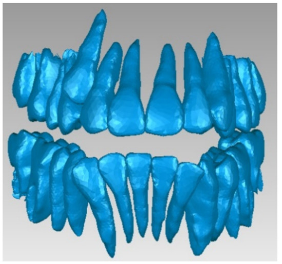 We did not use these models directly in the simulation, but certain elements served as a basis for the present study and analysis. A disadvantage of these models was that the complete structure of the teeth and osseous components was not obtained, but these virtual models could be used in analyses that also consider soft tissues. These models are also used for the virtual alignment of teeth.