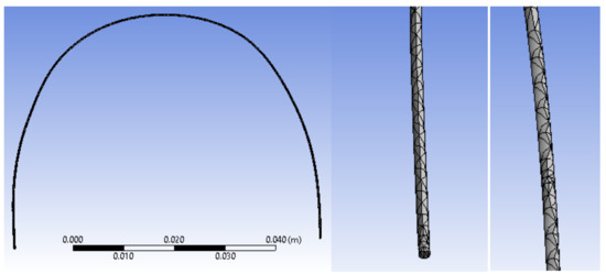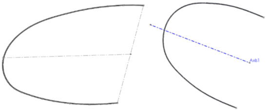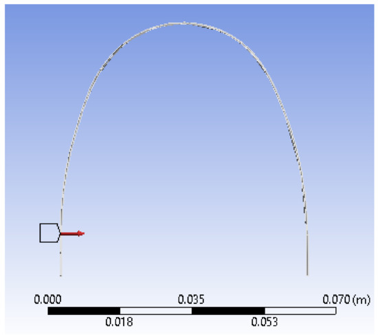 In the defined sketch plan, we drew a Spline curve over the uploaded and scanned image. In the perpendicular plane on this curve, we drew a circle with a diameter of 0.3556 mm, as shown in Figure 13.