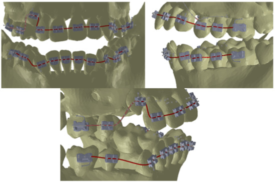 Once the models of the two wires were generated in the context of the ensemble, the custom model of the orthodontic system was finalized. The final model of the applied orthodontic system is presented in Figure 20.