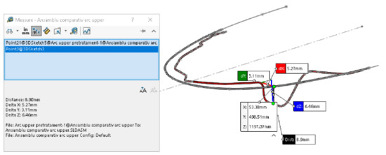 To measure the y distances on the deformed wires, we used CAD techniques specific to the SolidWorks software. Figure 25 shows the measurements for 4.5.