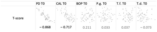 | PD T0 | CAL T0 | BOP T0 | P.g. T0 | T.f. T0 | T.d. T0 | |