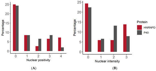 | hnRNPD | 46 | 8 (17.39) | 7 (15.21) | 8 (17.39) | 23 (50) | 8 (17.39) | 12 (26.08) | 4 (8.69) | 10 (21.73) | 12 (26.08) |