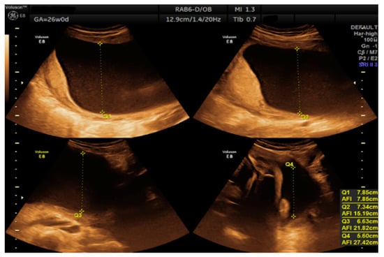 - Coombe-Patterson, J. Amniotic Fluid Assessment: Amniotic Fluid Index versus Maximum Vertical Pocket. J. Diagn. Med. Sonogr. 2017, 33, 280–283. [Google Scholar] [CrossRef] [Green Version]