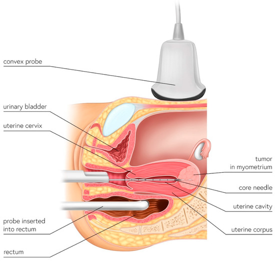The following supporting information can be downloaded at: https://doi.org/10.5281/zenodo.6394472 (accessed on 29 March 2022). Video S1: Ultrasound-guided trans-uterine cavity core needle biopsy of uterine myometrial lesions.