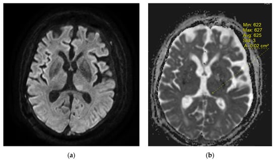 - Doelken, M.; Lanz, S.; Rennert, J.; Alibek, S.; Richter, G.; Doerfler, A. Differentiation of Cytotoxic and Vasogenic Edema in a Patient with Reversible Posterior Leukoencephalopathy Syndrome Using Diffusion-Weighted MRI. Diagn. Interv. Radiol. 2007, 13, 125–128. [Google Scholar] [PubMed]