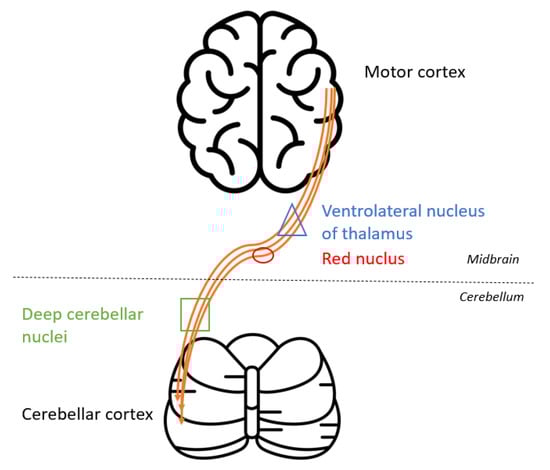 - Poretti, A.; Boltshauser, E. Crossed Cerebro-Cerebellar Diaschisis. Neuropediatrics 2012, 43, 53–54. [Google Scholar] [CrossRef] [PubMed] [Green Version]