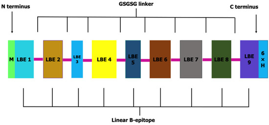 2.6. Multiepitope Antigen Construction, Antigenicity, Physicochemical Properties and Solubility Prediction