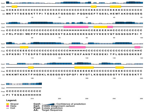 3.3. Antigenicity Prediction, Physicochemical Properties, Solubility and Secondary Structure of OvMCBL02 Multiepitope Antigen