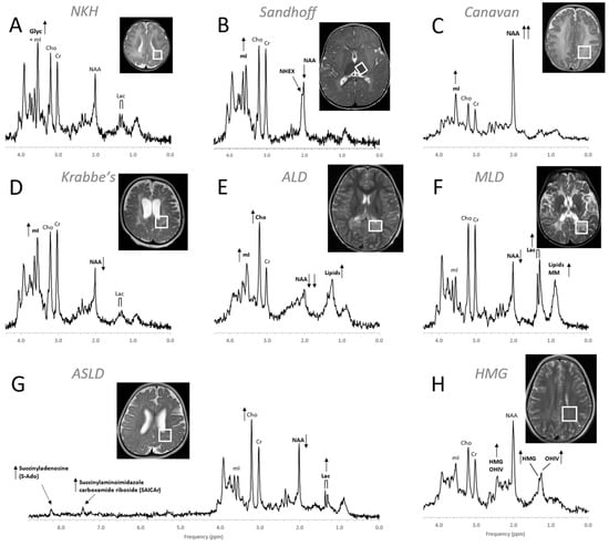 - Cecil, K.M.; Lindquist, D.M. Leukodystrophies. In MR Spectroscopy of Pediatric Brain Disorders; Bluml, S., Panigrahy, A., Eds.; Springer: New York, NY, USA, 2013; pp. 105–122. [Google Scholar]