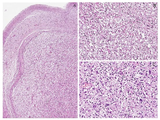 - Sun, M.; Shao, M.; Liu, J.; Zhao, L.; Weng Lao, I.; Yu, L.; Wang, J. Plexiform Cellular Schwannoma in Infancy and Childhood: A Clinicopathological Study of Seven Cases of an Underrecognized Nerve Sheath Tumor with a Tendency Toward Local Recurrence. Int. J. Surg. Pathol. 2022, 30, 265–272. [Google Scholar] [CrossRef]