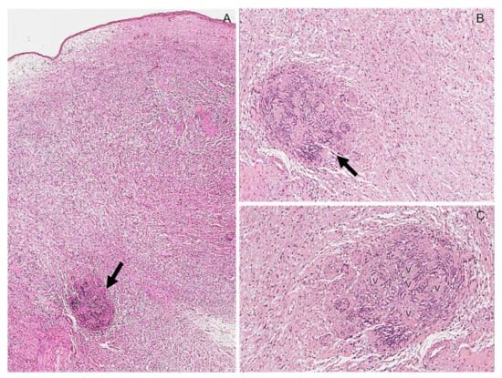 - Suchak, R.; Luzar, B.; Bacchi, C.E.; Maguire, B.; Calonje, E. Cutaneous neuroblastoma-like schwannoma: A report of two cases, one with a plexiform pattern, and a review of the literature. J. Cutan. Pathol. 2010, 37, 997–1001. [Google Scholar] [CrossRef]