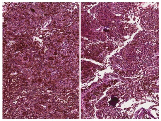 - Torres-Mora, J.; Dry, S.; Li, X.; Binder, S.; Amin, M.; Folpe, A.L. Malignant melanotic schwannian tumor: A clinicopathologic, immunohistochemical, and gene expression profiling study of 40 cases, with a proposal for the reclassification of “melanotic schwannoma”. Am. J. Surg. Pathol. 2014, 38, 94–105. [Google Scholar] [CrossRef]