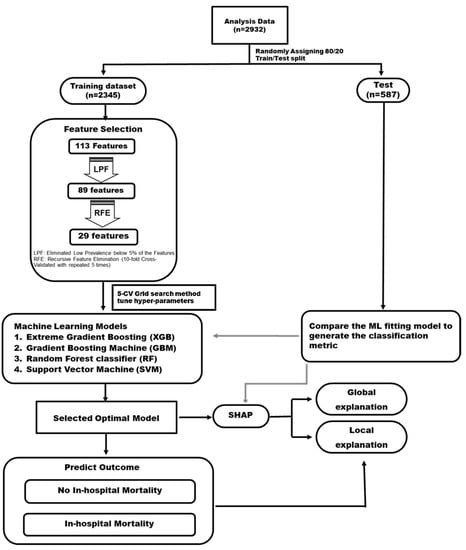 - Jiang, Z.; Bo, L.; Xu, Z.; Song, Y.; Wang, J.; Wen, P.; Wan, X.; Yang, T.; Deng, X.; Bian, J. An explainable machine learning algorithm for risk factor analysis of in-hospital mortality in sepsis survivors with ICU readmission. Comput. Methods Programs Biomed. 2021, 204, 106040. [Google Scholar] [CrossRef]