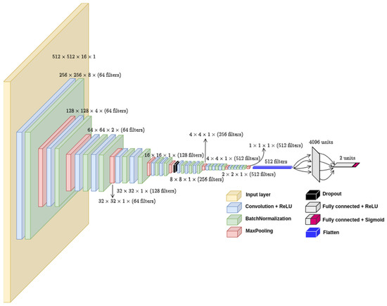 In our model, there are 17 convolutional layers split into 5 convolutional blocks with different filter sizes, as can be seen in more detail in Figure 4.