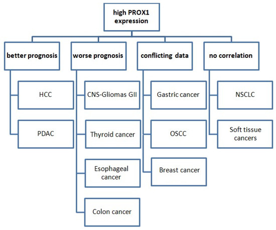PROX1 is expressed in various human cancers and is speculated to play a crucial role in carcinogenesis and tumor spread (Figure 1).