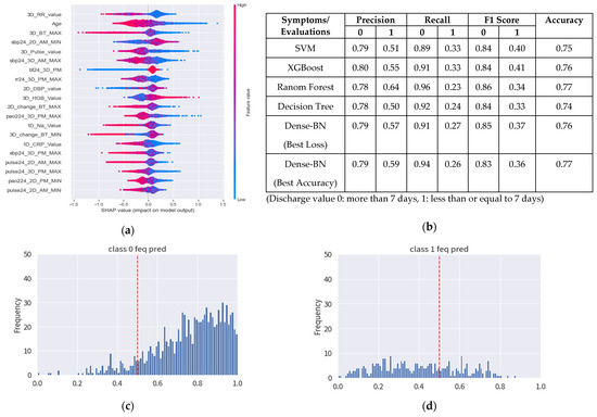 - Mean time analysis of the patient’s pneumonia recovery within the next 7 days: The analysis is evaluated by a trained model consisting of SHAP and dense layers with class weights having the input readings from the initial to 2nd/3rd day of vital signs and CXR that can effectively predict the recovery status of the patient on the 7th day.