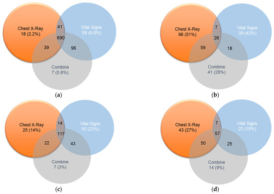| Confusion Matrix / Evaluations | Chest X-ray (A) | Vital Sign (B) | Combine Image/Feature Points | |||||