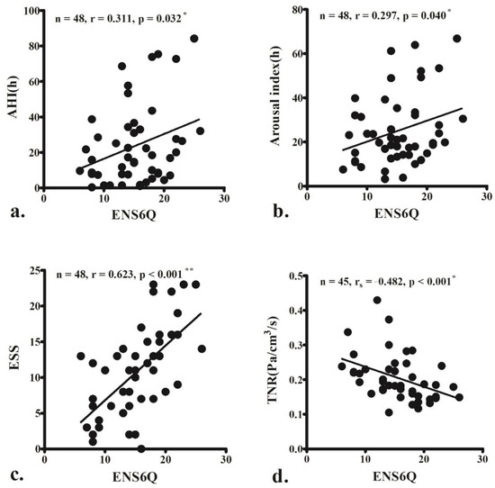 | ENS6Q | 1.40 (0.13–2.67) | 0.31 | 0.032 * | 1.13 (−0.41–2.68) | 0.25 | 0.147 | 2.042 |