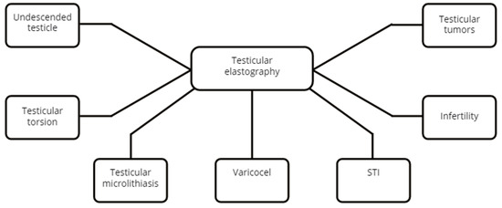 - Erdoğan, H.; Durmaz, M.; Özbakır, B.; Cebeci, H.; Özkan, D.; Gökmen, İ. Experience of using shear wave elastography in evaluation of testicular stiffness in cases of male infertility. J. Ultrasound 2020, 23, 529–534. [Google Scholar] [CrossRef]