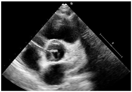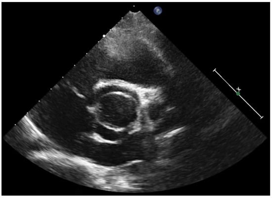 A differential diagnosis should be made between BAV and unicuspid aortic valve (UAV). UAV is a rare condition which accounts for 4–5% of cases undergoing valve surgery for AS and is a frequent cause of intervention in younger patients (<25 years) [24,25]. In paediatric patients, UAV may often be diagnosed by TTE looking at the parasternal short axis view of the aortic valve due to the usually good-quality images and lack of valve calcification (Figure 2); however, three-dimensional echocardiography has potential advantages over conventional TTE in confirming the diagnosis as well as in the monitoring of interventional procedures [24].