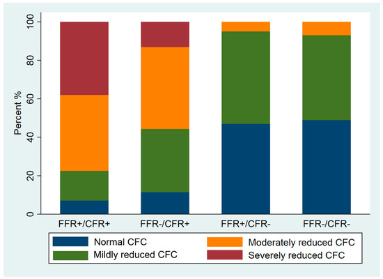 Contrarily, lesions with FFR−/CFR+ show CFC with a higher incidence of moderate to severe CFC that is line with earlier observations that these lesions are more likely to benefit from intervention. Finally, the highest incidence of moderate to severe CFC occurs in FFR+/CFR+ lesions, illustrating the usefulness of CFC for clinical decision making.