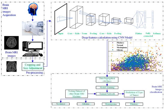 - Deepak, S.; Ameer, P.M. Brain tumor classification using deep CNN features via transfer learning. Comput. Biol. Med. 2019, 111, 103345. [Google Scholar] [CrossRef]