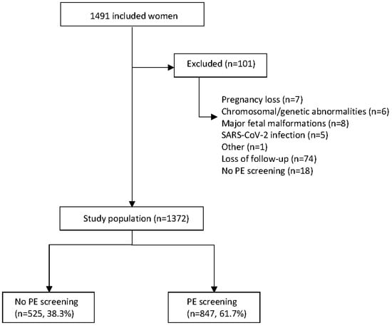 This study was a population-based study conducted at the Hospital de la Santa Creu i Sant Pau University Hospital, Barcelona, Spain. First- and second-trimester ultrasounds of pregnant women within the hospital’s area of influence were performed at the hospital. This study was approved by the Ethics Committee of the Institutional Review Board, and all the women gave their informed consent. This is a pilot study of a larger trial on contingent screening for PE, registered with ClinicalTrials.gov (NCT04767438).