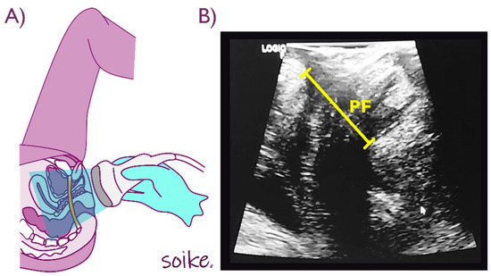 - Thibault-Gagnon, S.; McLean, L.; Goldfinger, C.; Pukall, C.; Chamberlain, S. Differences in the Biometry of the Levator Hiatus at Rest, During Contraction, and During Valsalva Maneuver Between Women with and without Provoked Vestibulodynia Assessed by Transperineal Ultrasound Imaging. J. Sex. Med. 2016, 13, 243–252. [Google Scholar] [CrossRef]