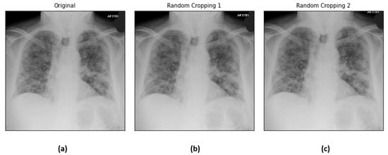 Sample chest X-ray images: (a) original, (b) random cropping and (c) random cropping .
