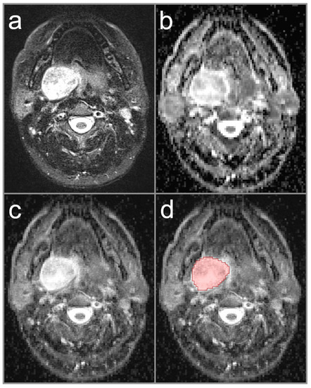 - Habermann, C.R.; Arndt, C.; Graessner, J.; Diestel, L.; Petersen, K.U.; Reitmeier, F.; Ussmueller, J.O.; Adam, G.; Jaehne, M. Diffusion-weighted echo-planar MR imaging of primary parotid gland tumors: Is a prediction of different histologic subtypes possible? AJNR Am. J. Neuroradiol. 2009, 30, 591–596. [Google Scholar] [CrossRef] [Green Version]