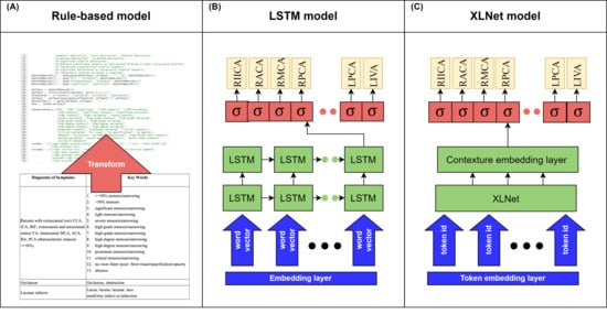 - Solti, I.; Cooke, C.R.; Xia, F.; Wurfel, M.M. Automated classification of radiology reports for acute lung injury: Comparison of keyword and machine learning based natural language processing approaches. In Proceedings of the 2009 IEEE International Conference on Bioinformatics and Biomedicine Workshop, Washington, DC, USA, 1–4 November 2009; pp. 314–319. [Google Scholar]
